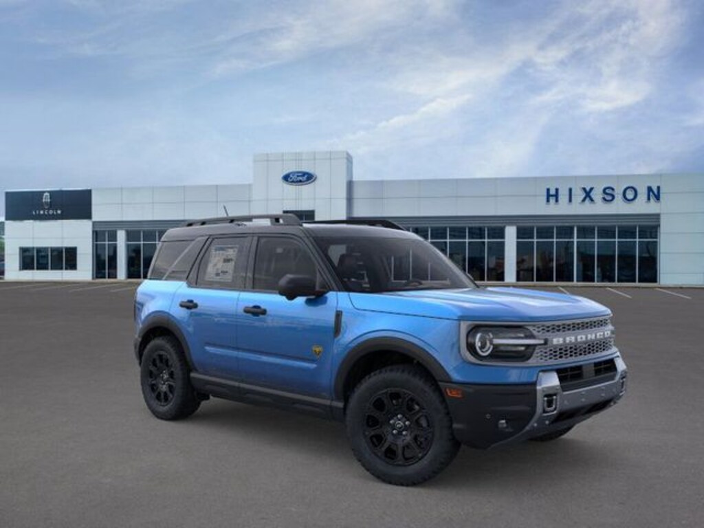 Velocity Blue Metallic 2025 Ford Bronco Sport Badlands 4WD 8-Speed Automatic EcoBoost 2.0L I4 GTDi DOHC Turbocharged VCT DEALER INSPECTED, 4-Wheel Disc Brakes, 6 Speakers, ABS brakes, Air Conditioning, Alloy wheels, AM/FM radio: SiriusXM, AM/FM Stereo, Auto High-beam Headlights, Auto-dimming Rear-View mirror, Automatic temperature control, B&O Sound System by Bang & Olufsen, Badlands Tech Package, Brake assist, Compass, Connected Navigation, Delay-off headlights, Driver door bin, Driver vanity mirror, Dual front impact airbags, Dual front side impact airbags, Electronic Stability Control, Emergency communication system: SYNC 4 911 Assist, Four wheel independent suspension, Front anti-roll bar, Front Bucket Seats, Front Center Armrest, Front fog lights, Front License Plate Bracket, Front reading lights, Fully automatic headlights, Garage door transmitter, HD Radio, Heated door mirrors, Heated front seats, Heated steering wheel, Illuminated entry, Knee airbag, Leather Trimmed Front Bucket Seats, Low tire pressure warning, Memory seat, Occupant sensing airbag, Outside temperature display, Overhead airbag, Overhead console, Panic alarm, Passenger door bin, Passenger vanity mirror, Power door mirrors, Power driver seat, Power Moonroof, Power passenger seat, Power steering, Power windows, Radio data system, Rear anti-roll bar, Rear reading lights, Rear seat center armrest, Rear window defroster, Rear window wiper, Remote keyless entry, Security system, SiriusXM, Speed control, Speed-sensing steering, Speed-Sensitive Wipers, Split folding rear seat, Steering wheel mounted audio controls, SYNC 4 w/Enhanced Voice Recognition, Tachometer, Telescoping steering wheel, Tilt steering wheel, Traction control, Trip computer, Variably intermittent wipers, Wheels: 17" Matte Black-Painted Aluminum.