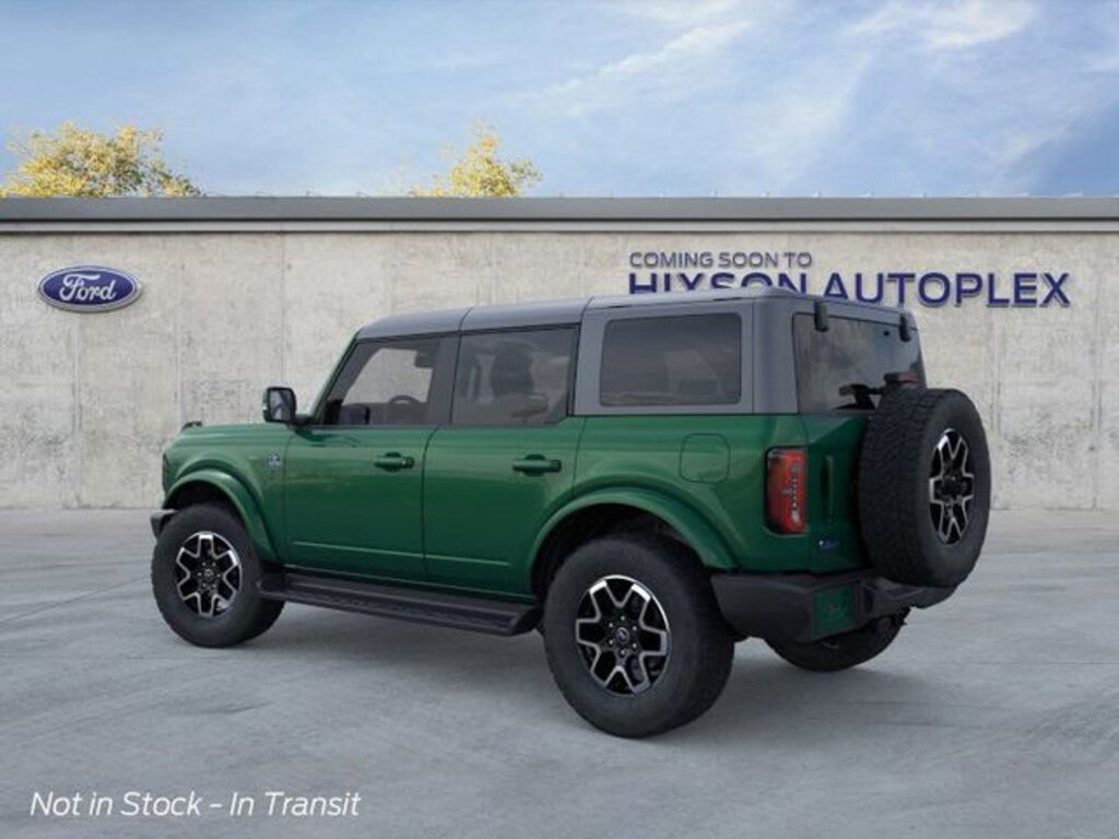 Eruption Green Metallic 2025 Ford Bronco Outer Banks 4WD 10-Speed Automatic 2.3L EcoBoost I-4 DEALER INSPECTED, 18" Bright Machined Aluminum Wheels, 3.73 Axle Ratio, 4-Wheel Disc Brakes, 7 Speakers, ABS brakes, Air Conditioning, Alloy wheels, AM/FM radio: SiriusXM with 360L, AM/FM Stereo, Auto High-beam Headlights, Auto-dimming Rear-View mirror, Automatic temperature control, Brake assist, Carbonized Gray Molded-In-Color Hard Top, Compass, Connected Navigation, Delay-off headlights, Driver door bin, Driver vanity mirror, Dual front impact airbags, Dual front side impact airbags, Electronic Stability Control, Emergency communication system: 911 Assist, Exterior Parking Camera Rear, Front anti-roll bar, Front Bucket Seats, Front Center Armrest, Front dual zone A/C, Front fog lights, Front License Plate Bracket, Front reading lights, Front wheel independent suspension, Fully automatic headlights, Hard Top Sound Deadening Headliner, Heated door mirrors, Heated front seats, Heated Leather-Trimmed/Vinyl Bucket Seats, Heated steering wheel, Illuminated entry, Integrated roll-over protection, Leather Shift Knob, Low tire pressure warning, Navigation system: Connected Navigation, Occupant sensing airbag, Outside temperature display, Overhead airbag, Overhead console, Panic alarm, Passenger door bin, Passenger vanity mirror, Power door mirrors, Power driver seat, Power passenger seat, Power steering, Power windows, Radio data system, Rear seat center armrest, Rear-Window Defroster & Washer, Remote keyless entry, Security system, SiriusXM w/360L, Speed control, Split folding rear seat, Steering wheel mounted audio controls, SYNC 4, Tachometer, Telescoping steering wheel, Tilt steering wheel, Traction control, Trip computer, Variably intermittent wipers, Voltmeter.