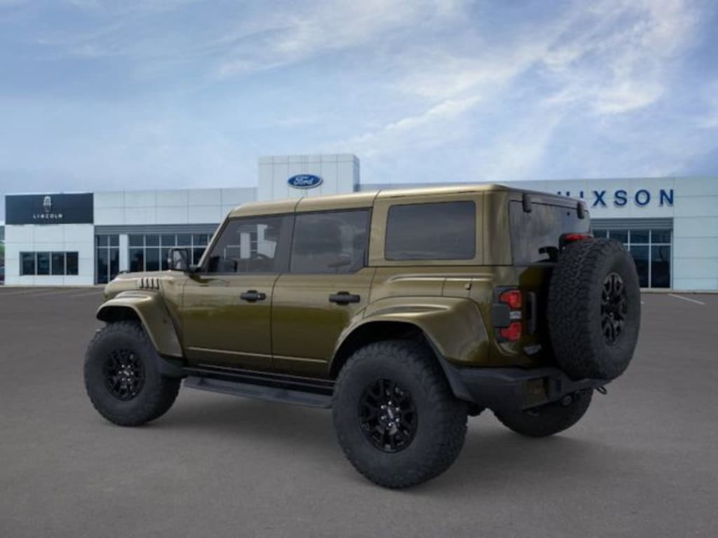 Shelter Green Metallic 2025 Ford Bronco Raptor 4WD 10-Speed Automatic 3.0L EcoBoost V6 DEALER INSPECTED, 12 Speakers, 4-Wheel Disc Brakes, ABS brakes, Air Conditioning, Alloy wheels, AM/FM radio: SiriusXM with 360L, Auto High-beam Headlights, Auto-dimming Rear-View mirror, Automatic temperature control, Body Color-Painted Hard Top, Brake assist, Compass, Connected Navigation, Convertible HardTop, Convertible roof lining, Delay-off headlights, Driver door bin, Driver vanity mirror, Dual front impact airbags, Dual front side impact airbags, Electronic Stability Control, Emergency communication system: 911 Assist, Exterior Parking Camera Rear, Front anti-roll bar, Front Bucket Seats, Front Center Armrest, Front dual zone A/C, Front fog lights, Front License Plate Bracket, Front reading lights, Front wheel independent suspension, Fully automatic headlights, Garage door transmitter, Glass rear window, Hard Top Sound Deadening Headliner, Heated door mirrors, Heated front seats, Heated steering wheel, Illuminated entry, Integrated roll-over protection, Leather Shift Knob, Leather-Trimmed/Vinyl Bucket Seats, Low tire pressure warning, Marine Grade Vinyl Bucket Seats, Navigation system: Connected Navigation, Occupant sensing airbag, Outside temperature display, Overhead airbag, Overhead console, Panic alarm, Passenger door bin, Passenger vanity mirror, Power door mirrors, Power steering, Power windows, Radio data system, Radio: B&O Sound System by Bang & Olufsen, Rear anti-roll bar, Rear seat center armrest, Rear window defroster, Rear window wiper, Rear-Window Defroster & Washer, Remote keyless entry, Security system, SiriusXM w/360L, Speed control, Split folding rear seat, Steering wheel mounted audio controls, SYNC 4, Tachometer, Telescoping steering wheel, Tilt steering wheel, Traction control, Trip computer, Turn signal indicator mirrors, Variably intermittent wipers, Voltmeter, Wheels: 17" Black High Gloss-Painted Aluminum.