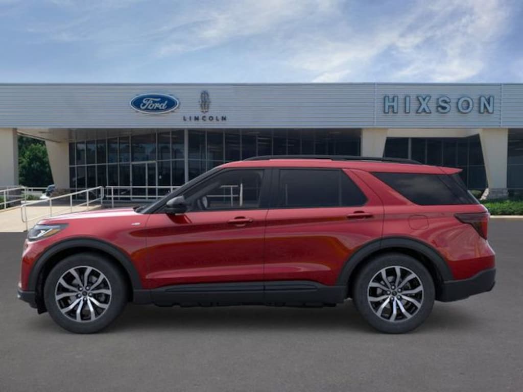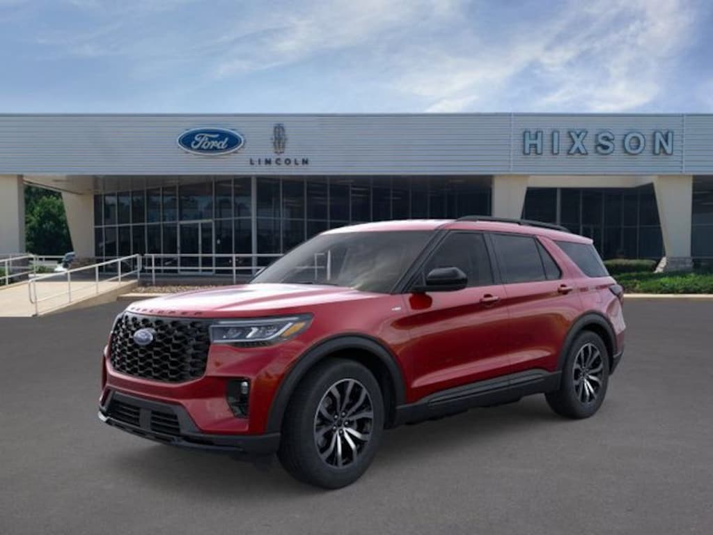 Rapid Red Metallic Tinted Clearcoat 2025 Ford Explorer ST-Line 4WD 10-Speed Automatic 2.3L EcoBoost I-4 DEALER INSPECTED, 4WD, 10 Speakers, 3.58 Non-Limited Slip Rear Axle, 3rd row seats: bench, 4-Wheel Disc Brakes, ABS brakes, Air Conditioning, Alloy wheels, AM/FM radio: SiriusXM with 360L, Apple CarPlay/Android Auto, Auto High-beam Headlights, Automatic temperature control, Brake assist, Bumpers: body-color, Compass, Delay-off headlights, Driver door bin, Driver vanity mirror, Dual front impact airbags, Dual front side impact airbags, Electronic Stability Control, Emergency communication system: 911 Assist, Exterior Parking Camera Rear, Four wheel independent suspension, Front anti-roll bar, Front Bucket Seats, Front Center Armrest, Front dual zone A/C, Front fog lights, Front reading lights, Fully automatic headlights, Garage door transmitter, Heated door mirrors, Heated front seats, Heated steering wheel, Heated Unique Cloth Captain's Chairs, Illuminated entry, Knee airbag, Leather steering wheel, Low tire pressure warning, Navigation System, Occupant sensing airbag, Outside temperature display, Overhead airbag, Overhead console, Panic alarm, Passenger door bin, Passenger vanity mirror, Power door mirrors, Power driver seat, Power Liftgate, Power passenger seat, Power steering, Power windows, Radio: B&O Sound System by Bang & Olufsen, Rear air conditioning, Rear anti-roll bar, Rear reading lights, Rear window defroster, Rear window wiper, Remote keyless entry, Security system, Speed control, Speed-sensing steering, Speed-Sensitive Wipers, Split folding rear seat, Spoiler, Steering wheel mounted audio controls, Tachometer, Telescoping steering wheel, Tilt steering wheel, Traction control, Trip computer, Variably intermittent wipers, Wheels: 20" Ebony-Painted Machined Aluminum, 4WD.