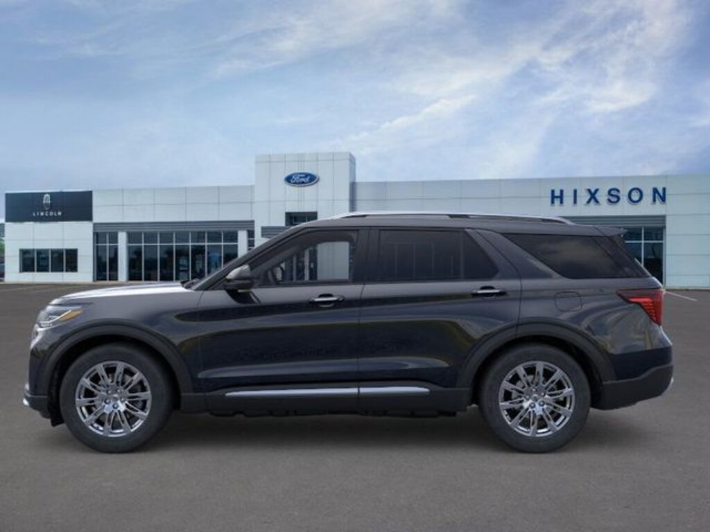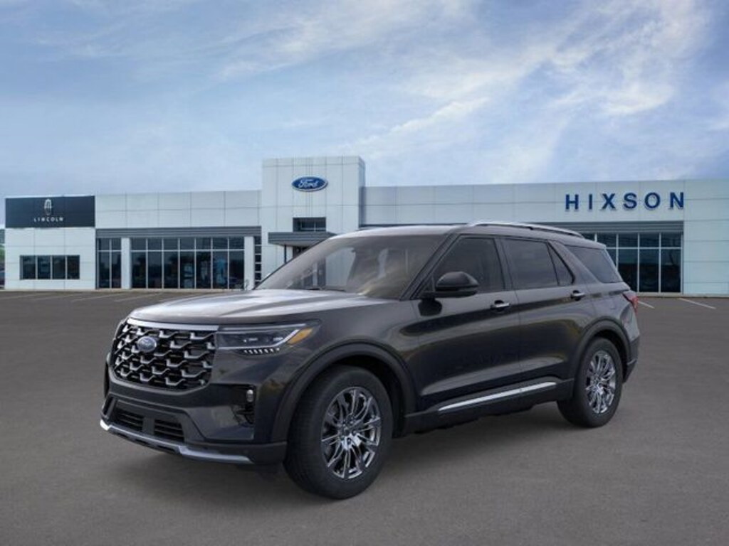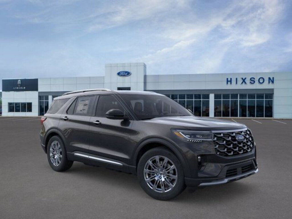 Agate Black Metallic 2025 Ford Explorer Platinum RWD 10-Speed Automatic 2.3L EcoBoost I-4 DEALER INSPECTED, 14 Speakers, 3.58 Non-Limited Slip Rear Axle, 3rd row seats: bench, 4-Wheel Disc Brakes, ABS brakes, ActiveX Trimmed Sport Captain's Chairs, Air Conditioning, Alloy wheels, AM/FM radio: SiriusXM with 360L, Apple CarPlay/Android Auto, Auto High-beam Headlights, Auto-dimming door mirrors, Auto-dimming Rear-View mirror, Automatic temperature control, Brake assist, Bumpers: body-color, Compass, Delay-off headlights, Driver door bin, Driver vanity mirror, Dual front impact airbags, Dual front side impact airbags, Electronic Stability Control, Emergency communication system: 911 Assist, Exterior Parking Camera Rear, Ford BlueCruise Equipped (1-Year Plan) (DISC), Four wheel independent suspension, Front anti-roll bar, Front Bucket Seats, Front Center Armrest, Front dual zone A/C, Front fog lights, Front License Plate Bracket, Front reading lights, Fully automatic headlights, Garage door transmitter, Heated door mirrors, Heated front seats, Heated rear seats, Heated steering wheel, Illuminated entry, Knee airbag, Leather steering wheel, Low tire pressure warning, Memory seat, Navigation System, Occupant sensing airbag, Outside temperature display, Overhead airbag, Overhead console, Panic alarm, Passenger door bin, Passenger vanity mirror, Power door mirrors, Power driver seat, Power Liftgate, Power moonroof, Power passenger seat, Power steering, Power windows, Radio data system, Radio: B&O Sound System by Bang & Olufsen w/HD, Rain sensing wipers, Rear air conditioning, Rear anti-roll bar, Rear reading lights, Rear window defroster, Rear window wiper, Remote keyless entry, Security system, Speed control, Speed-sensing steering, Speed-Sensitive Wipers, Split folding rear seat, Spoiler, Steering wheel mounted audio controls, Tachometer, Telescoping steering wheel, Tilt steering wheel, Traction control, Trip computer, Turn signal indicator mirrors, Variably intermittent wipers, Ventilated front seats, Wheels: 20" Luster Nickel-Painted Aluminum.