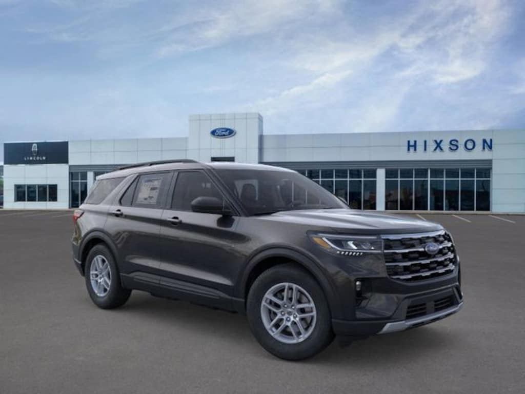Agate Black Metallic 2026 Ford Explorer Active RWD 10-Speed Automatic 2.3L EcoBoost I-4 DEALER INSPECTED, 3rd row seats: bench, 4-Wheel Disc Brakes, 6 Speakers, 8 USB Ports, ABS brakes, Active Badging, Active Comfort Package, Active Noise Cancellation, Air Conditioning, Alloy wheels, AM/FM radio: SiriusXM with 360L, AM/FM Stereo, Apple CarPlay/Android Auto, Auto High-beam Headlights, Automatic temperature control, Black Lower Bodyside Cladding with Chrome Accent, Black Roof-Rack Side Rails, Brake assist, Bumpers: body-color, Compass, Delay-off headlights, Driver door bin, Driver vanity mirror, Dual front impact airbags, Dual front side impact airbags, Electronic Stability Control, Emergency communication system: 911 Assist, Equipment Group 200A Standard Package, Exterior Parking Camera Rear, Four wheel independent suspension, Front anti-roll bar, Front Bucket Seats, Front Center Armrest, Front dual zone A/C, Front Fascia, Front License Plate Bracket, Front reading lights, Fully automatic headlights, Heated ActiveX Seating Material Captain's Chairs, Heated door mirrors, Heated Steering Wheel, Illuminated entry, Internet access capable: FordPass Connect 5G, Knee airbag, Low tire pressure warning, Manual-Folding Sideview Mirrors, Navigation System, Occupant sensing airbag, Outside temperature display, Overhead airbag, Overhead console, Panic alarm, Passenger door bin, Passenger vanity mirror, Power driver seat, Power Liftgate, Power steering, Power windows, Rear air conditioning, Rear anti-roll bar, Rear reading lights, Rear window defroster, Rear window wiper, Remote keyless entry, Remote Start System, Second Row Hvac Controls, Security system, Speed control, Speed-sensing steering, Speed-Sensitive Wipers, Split folding rear seat, Spoiler, Steering wheel mounted audio controls, Tachometer, Telescoping steering wheel, Tilt steering wheel, Traction control, Trip computer, Unique Cloth Captain's Chairs, Variably intermittent wipers, Vinyl-Wrapped Steering Wheel, Wheels: 18" Sparkle Silver-Painted Aluminum.