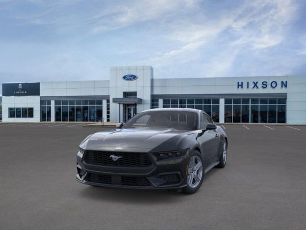 Shadow Black 2026 Ford Mustang RWD 10-Speed Automatic EcoBoost 2.3L I4 GTDi DOHC Turbocharged VCT DEALER INSPECTED, 1st Row Carpeted Black Floor Mats, 4-Wheel Disc Brakes, ABS brakes, Air Conditioning, Alloy wheels, AM/FM Stereo, Auto High-beam Headlights, Automatic temperature control, Brake assist, Bumpers: body-color, Compass, Delay-off headlights, Driver door bin, Driver vanity mirror, Dual front impact airbags, Dual front side impact airbags, Electronic Stability Control, Emergency communication system: 911 Assist, Exterior Parking Camera Rear, Four wheel independent suspension, Front anti-roll bar, Front Bucket Seats, Front Center Armrest, Front dual zone A/C, Front reading lights, Fully automatic headlights, Illuminated entry, Knee airbag, Leather Shift Knob, Low tire pressure warning, Occupant sensing airbag, Outside temperature display, Overhead airbag, Overhead console, Panic alarm, Passenger door bin, Passenger vanity mirror, Power door mirrors, Power steering, Power windows, Radio data system, Rain sensing wipers, Rear anti-roll bar, Rear Parking Sensors, Rear window defroster, Remote keyless entry, Speed control, Speed-sensing steering, Speed-Sensitive Wipers, Split folding rear seat, Sport steering wheel, Steering wheel mounted audio controls, SYNC 4, Tachometer, Telescoping steering wheel, Tilt steering wheel, Traction control, Trip computer, Variably intermittent wipers, Voltmeter, Wheels: 18" x 8" Painted Shadow Silver Cast Alum.
