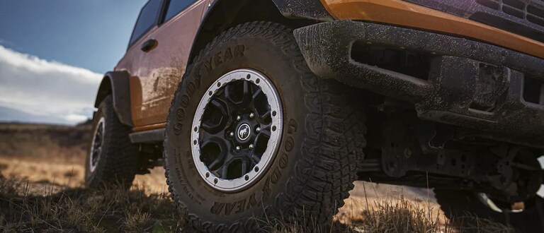The Sasquatch™ Package is available on every Bronco™ series and standard on Wildtrak.™ Package includes 35-inch tires with 17-inch beadlock-capable wheels, front- and rear-locking differentials, 4.7 final drive ratio with electronic-locking front and rear axle. There's also a high-clearance suspension and high-clearance fender flares. Also, due to high demand, the Sasquatch Package will be available in 2022 with manual transmission.